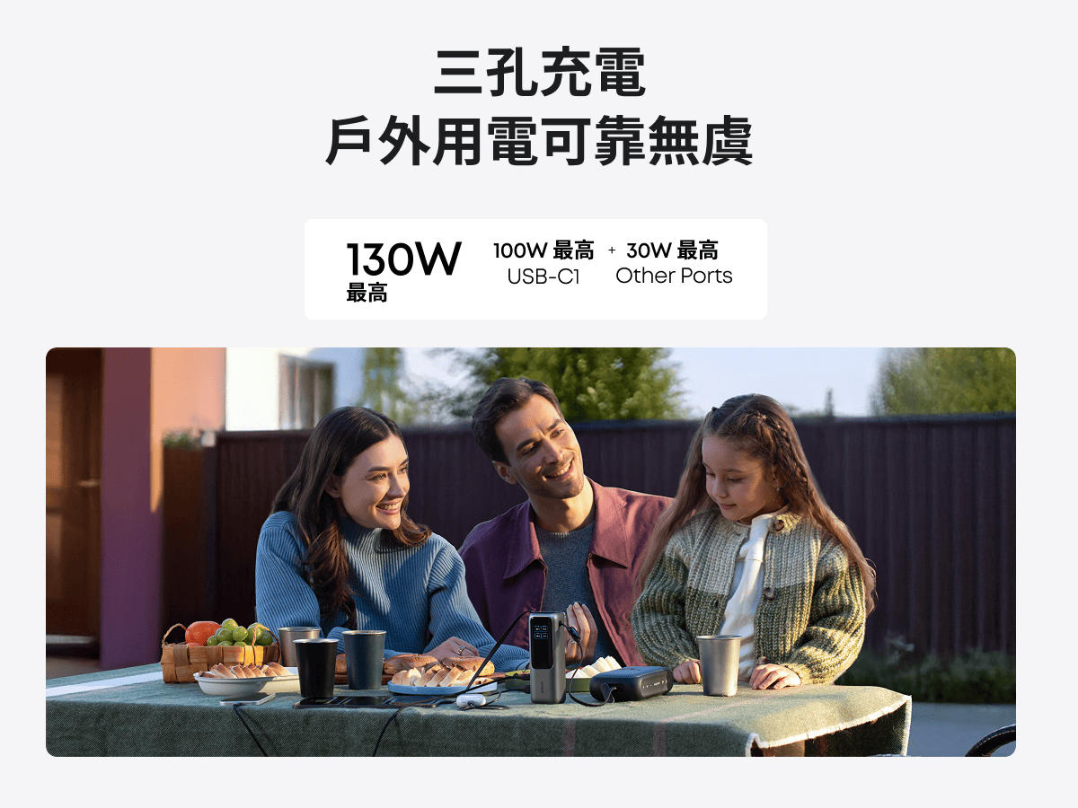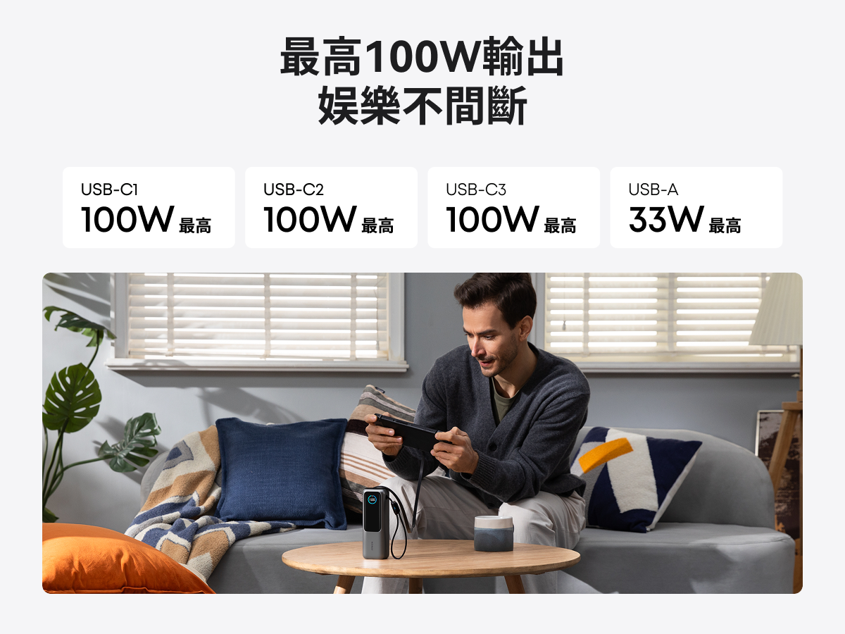 總計輸出:165W輸出口:1 USB-C1 USB-A2 USB-C Cable
