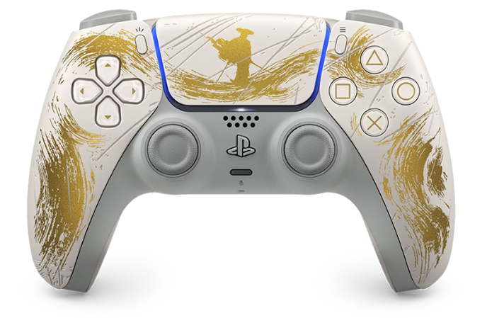這款獨特的 DualSense 無線控制器以遊戲的視覺元素為設計概念,飾以典雅的金色刷紋,將帶您在絕美的日本景致中展開壯闊的傳奇之旅。