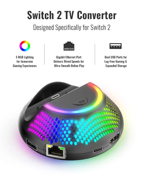 【JYS】NS2 switch 2 炫彩底座 遊戲機視頻轉換底座 NS2 圓形便攜式電視底座 JYS-NS2289 適用於 Switch2