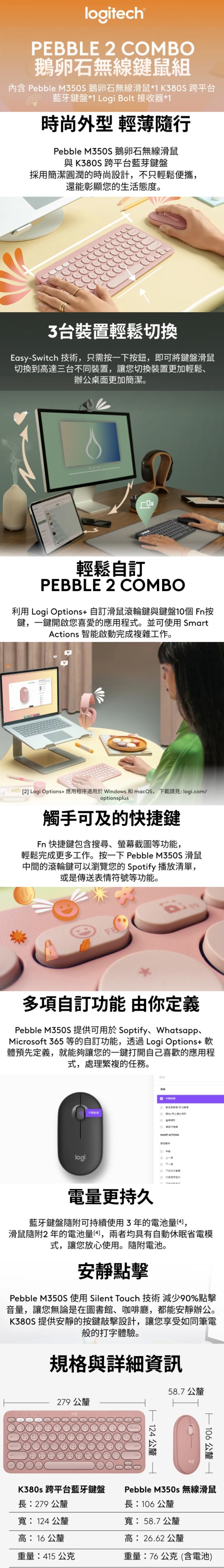 【Logitech 羅技】Pebble 2 Combo 無線藍牙鍵盤滑鼠組