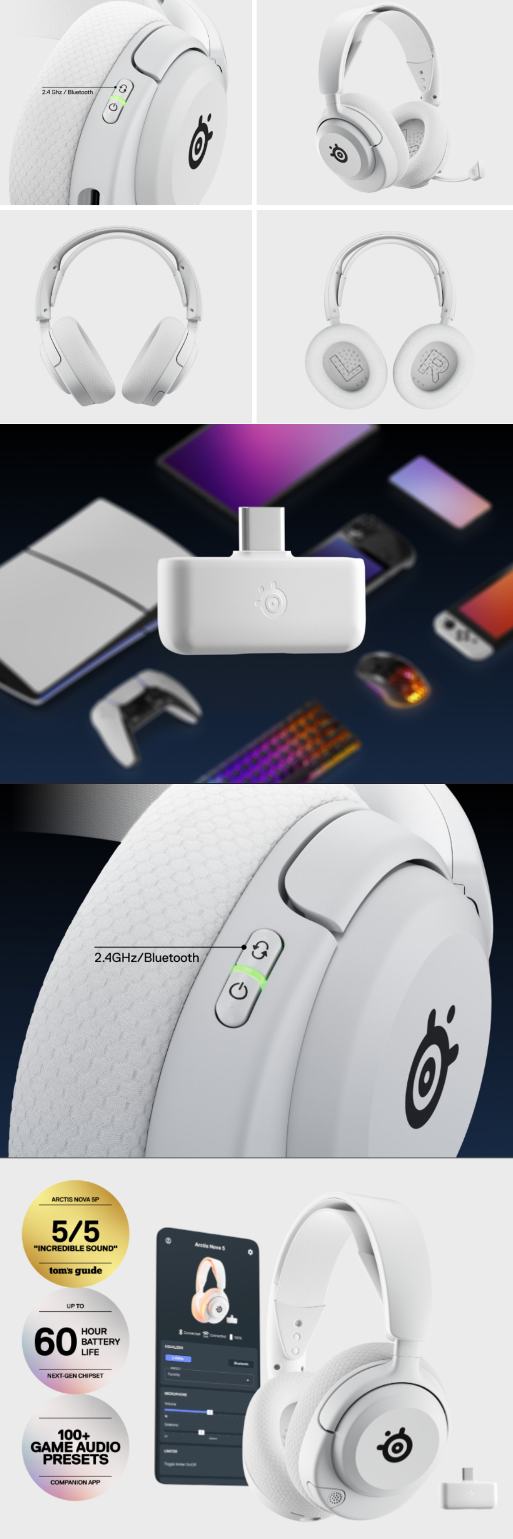 SteelSeries 賽睿 Arctis Nova 5 無線 電競耳機 麥克風 白 PS版