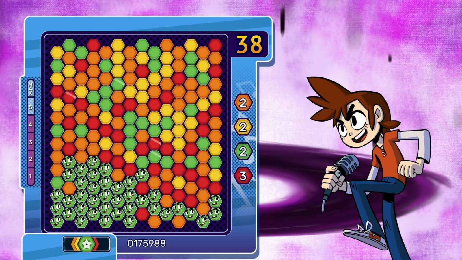《靛藍色 7》是一款基於顏色的單人和多人遊戲,靈感來自《7 Colors》(1991 年)和《Puyo Puyo Tetris》(2006 年),以一個發生在 80 年代和 90 年代之間的青少年喜劇故事來做為背景。當你通過漫畫式的電影畫面跟隨劇情發展時,你將面臨不同的戰鬥,並解鎖許多單人和本地 PVP 模式,講述故事的其餘部分。
