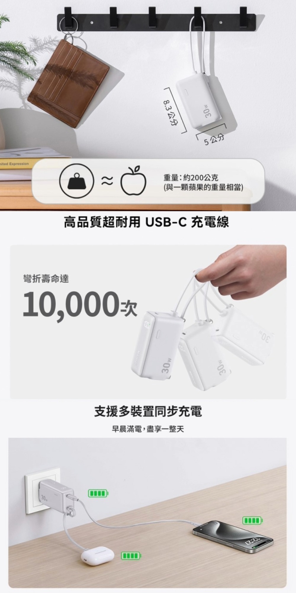 USB-C / USB-C Cable Output 1 port::5V=3A/9V=2.22A/10V=2.25A