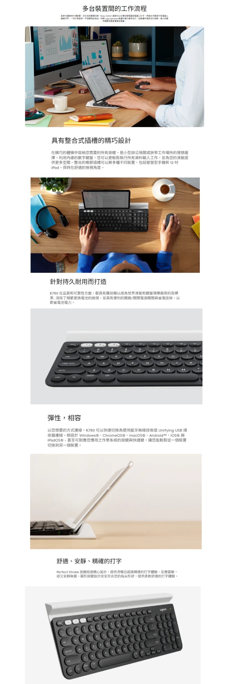 瞭解專為現今多工世代而設計的 K780 精簡鍵盤。
