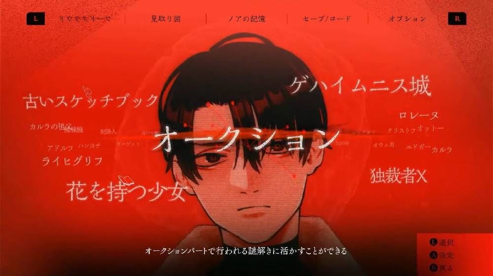 你的選擇將改變諾亞與其他參與者的結局。面對謊言與創傷,揭開或掩埋,都會影響古堡裡無數人的命運。本作劇本出自著名撰稿人 鈴木理香(《Another Code》、《願望之屋》)之手,角色設計由漫畫家 コースケ 負責,風格冷峻、劇情深沉。