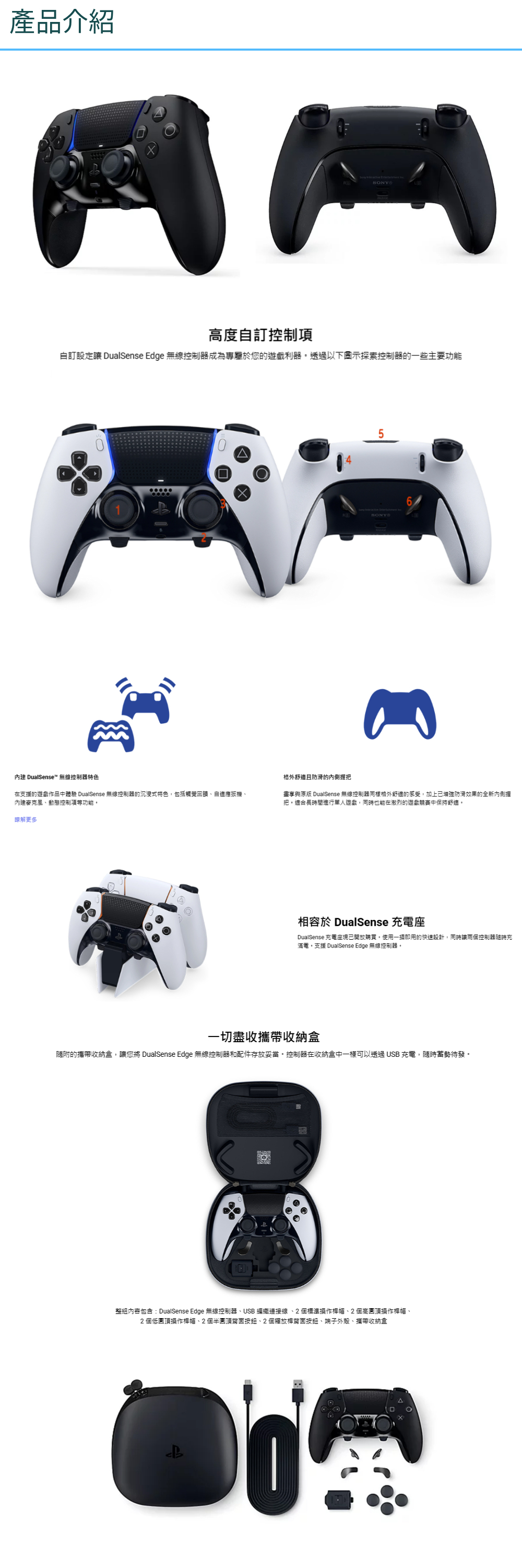 隨附的攜帶收納盒,讓您將 DualSense Edge 無線控制器和配件存放妥當